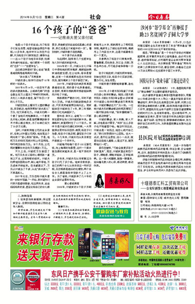 2008年,付斌家的8个孩子齐刷刷地考上大学,郭跃辉考上了郧阳医学院,戴萍考上了湖北经济学院,戴娥考上了内蒙古大学,这是付斌最难忘的一个夏天。