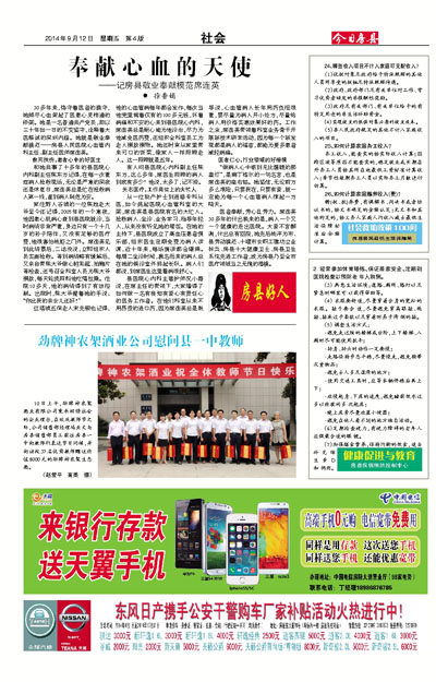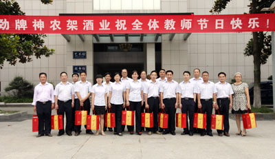 10日上午,劲牌神农架酒业有限公司秉承回馈社会的企业理念,在欢庆教师节之际,公司销售部经理冯亚文与房县销售部员工前往房县一中向教师们表达节日问候,并向该校37名优秀教师赠送价值8000元的劲牌神农架生态酒。