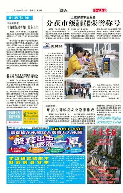 2014年,我县认真贯彻落实中央和省、市农村工作会议及1号文件精神,以“强农、富农、美农”为目标,以农民增收为核心,创新举措,狠抓落实,农村经济社会发展取得了明显成绩。特别是以土城镇、窑淮镇、军店镇、五台乡为代表的乡镇在全市“三农”各项工作中名列前茅,得到市委、市政府的充分肯定和表彰。