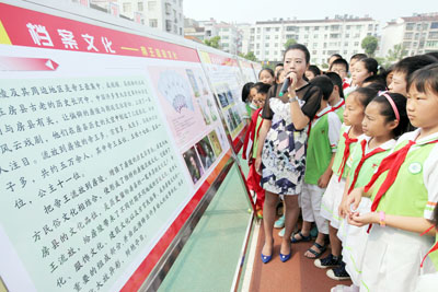 6月9日是国际档案日,由县县委宣传部、县档案局(馆)、县教育局联合开展的“档案文化进校园”活动在东城小学隆重举办。