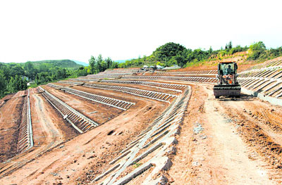 日前,军店镇夏家沟坡耕地水土流失综合治理一期工程竣工。该工程自2014年启动以来,县水务、水土保持部门整合资金1666万元,将军店镇夏家沟小流域5330亩“跑土、跑肥、跑水”的坡耕地,治理成梯平地,并采用混凝土框架护坡种草保土。治理后靠天收的坡耕地变成了“保土、保肥、保水”的粮食高产地。 (张启龙 孙淑芬 摄)