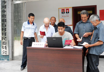 近日,为切实加大财政与编制政务公开力度,沙河财政所工作人员在鹰咀石村指导农民如何查询房县财政与编制政务公开网(左图),引导农民对本乡政务、财务、编制等进行查询监督,此举得到广大村组干部及群众的好评。