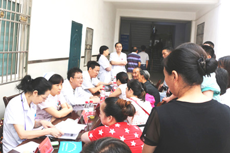 17日,十堰市人民医院房县人同乡会在县人民医院举办“服务同乡健康行动”大型义诊活动。14名来自市人民医院房县籍内科、外科、妇产科、儿科、医学影像科专家,在县人民医院举行义诊活动。(裴中东 摄)