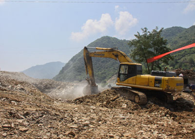 日前,在房县大中型水库移民避险解困项目姚坪乡庆口村杜家坡集中安置点,挖掘机等施工机械正在平整场地,工作人员正按照设计图纸进行测量(如图)。据悉,房县以大中型水库移民避险解困项目为抓手,整合各类项目资金突破2亿元。第一期计划在大木厂镇安阳沟村,姚坪乡屈家坡村、庆口村安置移民609户2155人。(吴宏强 摄)