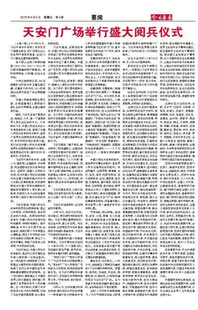 (上接1版)上午9时55分,习近平等中外领导人来到天安门城楼主席台,向广场观礼台上的各界代表挥手致意,全场5.5万人爆发出雷鸣般的掌声。
