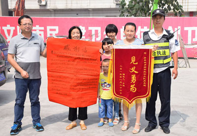 8月28日上午,为表达感激之情,许女士带领家人一起将一封感谢信和一面锦旗送到肖正超手中,并表示了由衷的谢意。