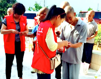 5日上午,房县大爱义工23名志愿者来到尹吉甫镇福利院,为五保老人开展爱心志愿服务活动。活动中,社会各届爱心人士捐赠了价值1万多元的水果、衣服和生活用品。随行的志愿者帮助老人修剪指甲、清洗衣服,和老人们谈心聊天。据大爱义工队队长赵伟介绍,该队将把尹吉甫镇作为定点服务乡镇,定时开展志愿服务活动,今后还将重点关注该镇留守儿童、残疾人等社会弱势群体,让大爱精神文明之花盛开在尹吉甫镇。图为志愿者正在为五保老人修剪指甲。 (刘中华 摄)
