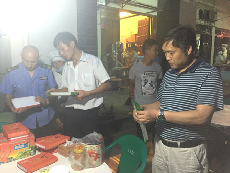 9日,县食品药品监督管理局对唐城美食街夜市、烧烤摊点进行第二次地毯式集中整治。检查中,执法人员重点检查夜市餐饮单位及加工经营场所持有《餐饮服务许可证》情况、从业人员的健康证持有情况、工作衣帽穿戴、加工经营场所卫生状况、购进食品原料索证索票及台账登记情况等情况,对16家夜市餐饮单位下达责令整改通知书,提出限期整改意见60余条,并现场宣传相关的法律法规知识。(杨春亮 摄)