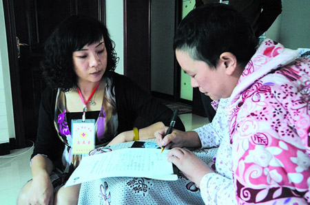 因患乳腺癌晚期行动不便,15日上午,县红十字会副秘书长黄怡带着《湖北省人体器官捐献自愿书》等相关文件,专程来到刘仕菊位于城关镇中西关启扬居民小区的家中,为她办理器官捐献相关事宜。听完黄怡的讲解后,刘仕菊慎重地在《湖北省人体器官捐献自愿书》上签下自己的名字。