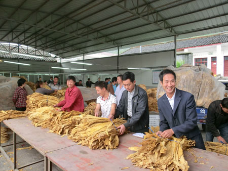 “我今年烟叶收入近9万元,种五年粮都抵不上种一年烟叶,烟叶让我真正脱了贫。”29日,中坝乡今年新增烟农李道海高兴的告诉笔者(左图)。连日来,中坝乡烟站一片忙碌喜庆景象,今年该乡烟叶种植面积3700亩,产值可过1000万元 ,税收过200万元。(何玲玲 摄)