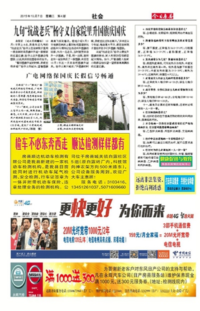 广电网络保国庆长假信号畅通九旬“抗战老兵”杨守义自家院里升国旗庆国庆