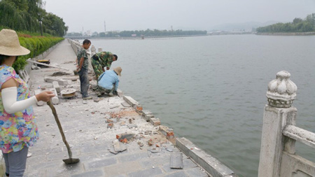 县住建局对《百姓问政》栏目反映城区市政设施破损问题,高度重视,及时整改,取得明显成效。连日来,县住建局市政建设工作者放弃假日,加班加点对《百姓问政》栏目反映城区诗经大道部分花木遭破坏,滨河大道、吉甫路和诗经广场市政设施遭破损部位进行修复,取得了明显成效。截至目前,县住建局投入工人600余人,修复城区破损道板395平方米、西河防护栏187米,补植花草3620平方米,安装绿化防护栏960米。(杜斌 彭明瑞 摄)