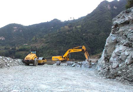 近日,记者在十竹路房县段大木厂镇和姚坪乡工程建设现场看到,数台挖掘机正在开山破石,进行路基开挖填筑作业。今年以来,施工单位抢抓有利施工季节,克服各种困难,组织人力物力抢抓时间,加快工程进度。截至目前,十竹路房县段已完成路基35公里,其中路基土石方挖方2216750方,路基填方409673方,桥梁隧道工程正在进行招投标。 (吴宏强 摄)