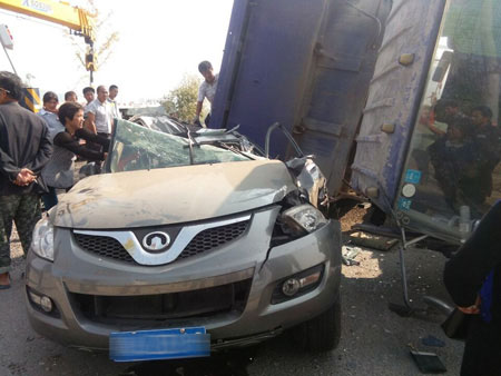 本报讯 (特约记者魏世银通讯员杜德仕) 21日下午,十房高速路口发生惊人一幕,一辆运沙大货车行驶途中发生侧翻,将从旁边经过的一辆轿车压倒,致车内两名男子受重伤。危急时刻,恰被出警经过此地的城关派出所四名民警发现,经紧急施救送县人民医院抢救脱离生命危险。