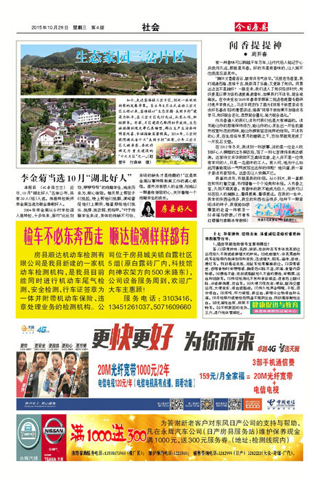 本报讯 (记者田兰兰) 近日,10月“湖北好人”名单公布,共有30人(组)入选。房县特校教师李金菊当选为敬业奉献好人。