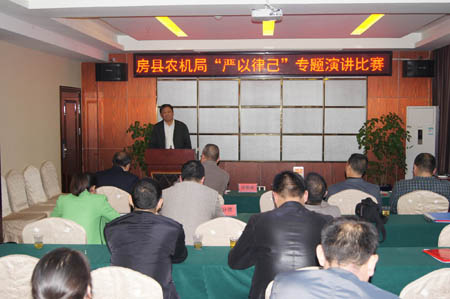 近日,县农机局举行践行“三严三实”主题演讲比赛,该局13名选手参加比赛。选手们围绕“严以律己,从我做起”这一主题,阐述了对“三严三实”精神实质的领会和认识,并结合自身工作,充分展现了党员干部立足本职、服务群众、无私奉献的精神风貌。经过角逐,最终评选出一等奖、二等奖、三等奖5名。 (代启和 摄)