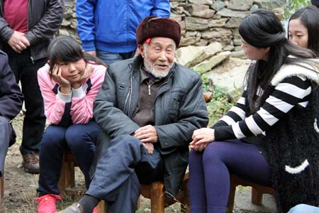 传承人尹维鹏(中)正在讲述尹吉甫传说
