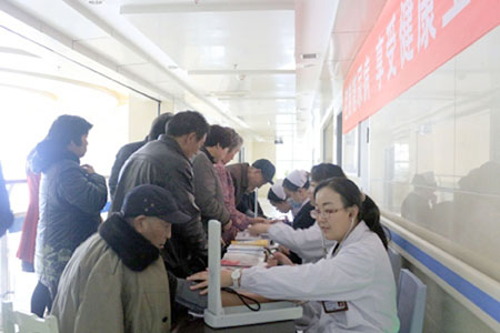 在外科楼内分泌科病区,内分泌科的专家们为每一位前来就诊的患者做了详细的询问及检查,免费测随机血糖、免费测血压、免费测血脂等。当日,近100人次参加了义诊活动。 (屈振坤 摄)