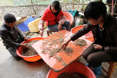日前,堵河库区姚坪乡姚坪村留守妇女陈红丽(右)在筛选虾米。姚坪乡地处南水北调丹江口库区上游堵河腹地,近年来,该乡实施退耕还林1万多亩、治理水土流失83平方公里,建设污水处理厂,净化堵河库区水质。目前,堵河库区姚坪段水质达到国家一级标准,黄鱼、银鱼、虾米等野生鱼虾种类、数量增多,肥美的鱼虾成为库区沿岸农民增收的主导途径之一。
