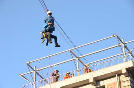 成立当天,救援队进行了现场演练。演练中,我县一男子在户外运动时不幸跌下某高山峡谷。接到指令后,县消防联合“山岳救援队”、“神武”救援队,在航拍无人机的侦察下很快确定了遇险男子的准确位置,并借助安全绳下滑到数十米深的峡谷成功将男子救出。精彩的救援演练赢得了阵阵掌声。