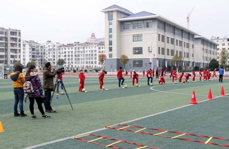 日前,十堰市教育电视台记者专程到东城小学采访该校校园足球开展情况。该校大力开展“足球进 校园”活动,购置200个足球,安装球门、球网;学校每周开设1节足球课,从四、五、六年级中遴 选了爱好足球运动的80名学生组建“校园足球队”。 据了解,该校自开始申报“国家足球特色学校 ”以来,已经开始着手编制《房县东城小学校园足球五年发展规划》;在今年的市第五届运动会中 ,该校足球代表队取得全市第4名、地方组第2名的好成绩。 (李英 摄)