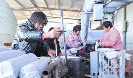日前,土城镇白鸡铺村村民在食用菌基地制作菌棒。土城镇食用菌种植基地年生产代料菌棒60万袋,年产值400多万元。当地村民到基地打工,人均年收入在2万元以上。(杜达巍 余志宏 江晓鹏 摄)