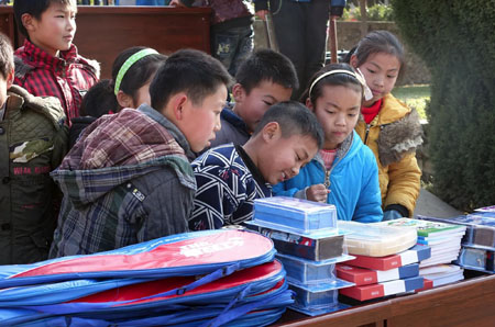 据悉,此次活动是学生通过学校向团组织提交一份自己的小心愿,如:一本书、一个书包等,团组织通过号召社会人士参与“携手微心愿 共筑微能量”公益活动,帮助生活在贫困乡下的孩子们实现这些小心愿。本次活动帮助276名学生实现了微心愿,将资助4名贫困学生完成学业。 (付培文 摄)