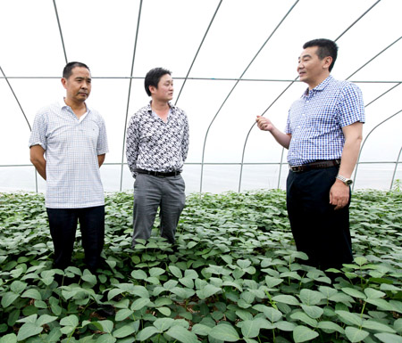 县长蔡贤忠在县农商行“深耕四区”活动现场调研