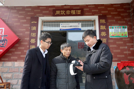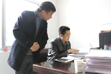 县农商行行长黄太平(右)在基层支行检查信贷工作