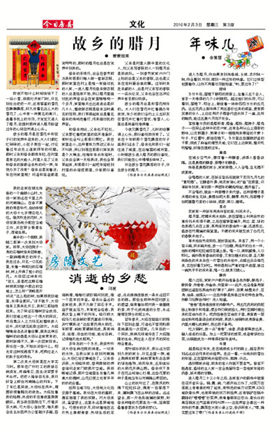 今夜又飘雪花了,儿时的往事涌上心头,那份喜悦却没有了。父亲在十年前那个雪花飘落的日子离我们远去了,母亲也和我们一起住进了城里,在这喧嚣的城市里,小时候故乡进入腊月的那份喜悦,我们只能在心中慢慢去体味了。