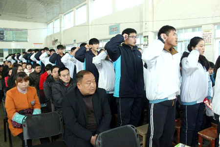 誓师大会着重鼓励高三学子树立坚定信念,保持良好心态,在最后的关键时刻,激情拼搏,科学规划,查漏补缺,争分夺秒,争取在六月高考时不留遗憾,为人生至关重要的一次挑战努力奋斗。(钟正菊 摄)