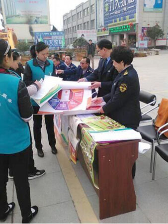 红塔工商分局执法人员现场发放和讲解食品药品安全宣传知识。(赵先华 冯成泰 摄)
