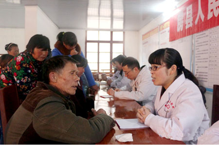 近日,县人民医院组织妇产科、普外科、心胸泌尿外科、中医科、口腔科、感染科共计6名专家,来到对口帮扶的野人谷镇马里村开展义诊活动。此次义诊活动得到了该村村民的积极响应,短短两个小时的义诊时间内,接诊病人达到50余人。(曲振坤 摄)