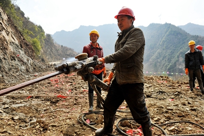日前,十竹路房县段施工现场一派繁忙景象,大型挖掘机、推土机正挥舞着臂膀开山平土,施工工人们正忙碌着打炮眼,焊台车——石垭子隧道、高船中桥、石垭子中桥全面开工,十竹路房县段路基工程基本完工,正式进入桥隧工程建设阶段。