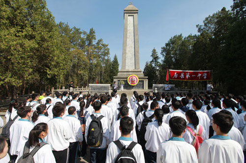 县一中学生向烈士纪念碑敬献花圈