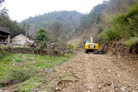 11日,随着挖掘机的轰鸣声,当地农户翘首盼望的五台乡金牛寺村小桥沟路终于修到了村民李得平的家门口。小桥沟里共住有8户人家28人,由于位置偏辟,村民一直过着肩挑背扛的生活。交通瓶颈打破后,村民李得平初步准备发展2000只土鸡,通过发展产业脱贫致富。 (况建强 摄)