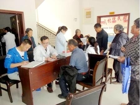为认真做好春季疾病防控工作,4月份以来,化龙堰镇积极组织卫生院及乡村医生深入各村为群众进行免费健康检查,发放健康知识手册。截止目前,已为8个村3700余人进行了健康体检,发放健康体检手册4000余册。图为该镇卫生院医护人员在西川村开展免费服务。 (张行平 摄)