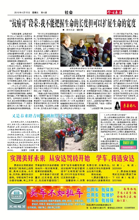 “难道从此我只能住在医院里了。”段荣想不通,但又只能面对事实。“我不能让疾病压倒,如果延续不了生命的长度,那我就要更加珍惜时间,在工作中扩展生命的宽度。”经过思想上的激烈斗争,在与医生进行沟通之后,段荣毅然选择了保守治疗方案,并决定回到单位上班。