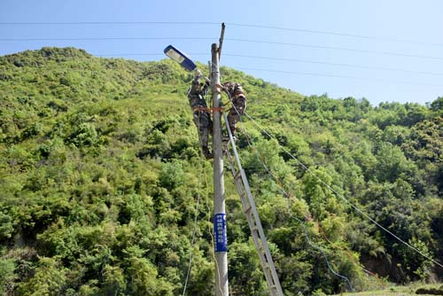 近日,县综合执法局路灯管理所驱车100多公里,来到驻点村上龛乡二荒村,为村民集中居住点安装路灯。此次路灯亮化工程共投资3万余元,安装现代化路灯6盏,架设供电线路1千余米,所有路灯用电均由民营电站百户沟电站免费承担。路灯安装后,改变了该村长期以来夜间出行不便的面貌,对群众文化生活和农业生产将起到积极作用。(张力 杨小微 摄)