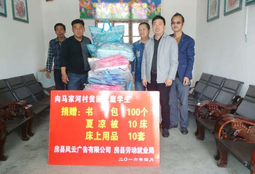 “我替村里贫困学生真诚向你表示感谢!谢谢你对我村精准扶贫工作的关注,谢谢你给学生们送来学习生活急需品。”日前,在门古寺庙马家河村书记握着房县风云广告有限公司负责人袁海的手激动地说到。
