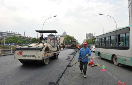 24日下午,随着最后一道沥青混凝土路面铺筑完毕,西门河大桥加固改造工程完工通车(下图)。项目开工以来,县公路局始终紧盯目标节点,科学安排施工,工程历时60天,比原计划提前7天完工,为市民提供一个安全畅通的出行环境。 (王东 摄)