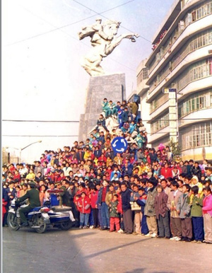 位于县城中心的贺龙像