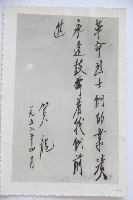贺龙为房县红军烈士纪念塔题词