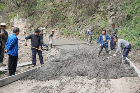 日前,在五台乡金牛寺村登仙观公路上,工人们正忙碌着硬化从登仙观至马家湾的村级公路。同时,该乡红场村陈家湾、磨石沟公路2公里硬化及金牛寺村茶园路修建等工程已经开工,这些公路的陆续修建,将解决公路沿线100余户400多人的生产生活实际困难。 (况建强 陈长生 摄)