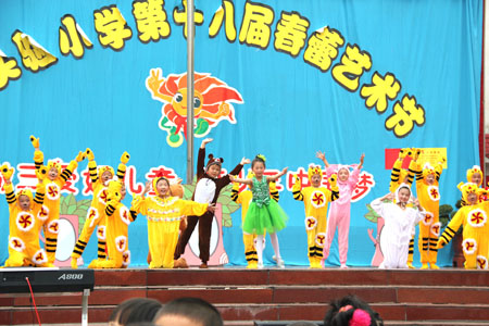 一年一度的春蕾艺术节,是该校办学水平和素质教育的一次大检阅,已成了全面展示师生艺术素养及精神风貌的大舞台,在社会享有极高的声誉。为了让今年第十八届艺术节更加“出彩”,切实为师生、家长献上一台好看、好听、好玩,兼具文化内涵与艺术品位的“文化大餐”,该校改变往年少数学生表演,大多数学生当观众的局面,今年“艺术节”活动除传统项目文艺汇演、阳光体育展示以外,增加师生素质展示、英语口语大赛、学生手工艺术展评项目,让孩子们在学校搭建的艺术“大舞台”上,尽情展示自己的爱好和特长。