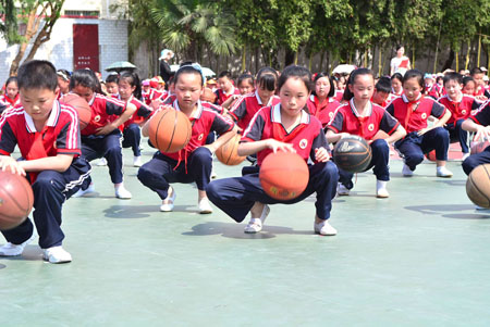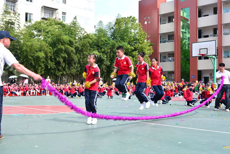 为深入推进素质教育,近年来,该校将“每天锻炼一小时”学生训练目标纳入学校常规工作,并做到“三定”:定时间,利用每天下午课外活动时间分年级进行训练;定内容, 2—5年级分别以跳皮筋、转呼啦圈、拍皮球、跳绳为主要训练内容;定目标,各年级在“六一”期间集中展示自己一年来的训练成果。通过坚持不懈的抓活动的开展,学生的运动意识、运动激情在不断增强,整个校园更加充满了生机和活力。