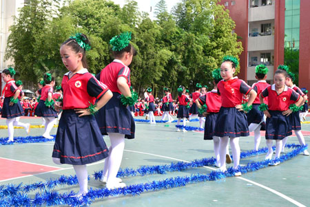 5月30日,县实验小学举行阳光体育展示活动。该活动是本校第十八届春蕾艺术节活动的一部分,旨在展示各年级“每天锻炼一小时”大课间活动成果。