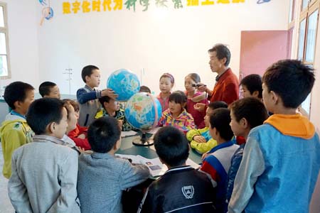 近日,五台乡廖河小学的学生正在参加科学小组讨论活动。近年来,该校不断加大投入,改善环境,丰富载体,着力丰富校园文化。目前,学校硬化美化校园文化广场1500平方米,建设文化墙800平方米,配置电脑、电视、电子琴、健身路径等50余件,购置图书3000余册,悬挂格言警句条幅牌扁100余幅。