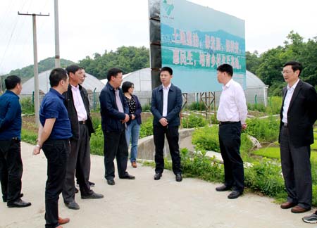 市委书记周霁(前排右二)在县委书记蔡贤忠(前排右一)等领导的陪同下在省级生态乡五台乡调研