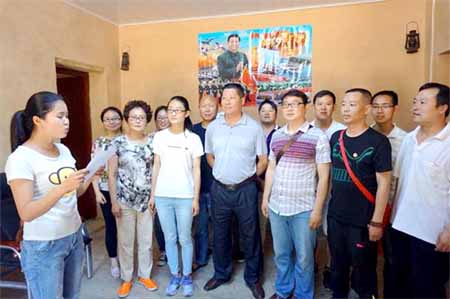 为加强党性教育,推动“两学一做”学习教育深入开展,近日,县质监局组织支部全体党员及入党积极分子前往万峪河乡开展“支部主题党日”活动。活动当日,全体党员整齐佩戴党员徽章,唱国歌、重温入党誓词,并诵读党章。通过学习党章党规和习近平总书记系列重要讲话精神,使党员们进一步坚定理想信念,明确自己的职责和身份,以实际行动,做工作的务实者,做合格党员。图为该局党员及入党积极分子正在诵读党章。 (王烁 摄)